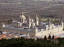 Más imponente es el Monasterio de El Escorial, encargo de Felipe II y construido entre 1563 y 1584 por Juan Bautista de Toledo y por Juan de Herrera. La planta se puede relacionar con la realizada por Filarete para el Hospital mayor de Milán (hoy sede de la Universidad de los Estudios de Milán): es un rectángulo de alrededor de doscientos por ciento sesenta metros, con algunos patios grandes y una iglesia, inspirada en la Basílica de San Pedro de Bramante. Esta iglesia se construyó al fondo en la parte central. En el exterior, donde se levantan cuatro torreones angulares, la arquitectura del monasterio es más bien desnuda, mientras que el interior presenta una volumetría muy articulada, con la cúpula, el cuerpo de la iglesia, las torres en la fachada y el cruce de las cubiertas a doble vertiente.
