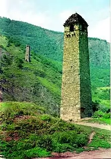 La mayoría de las torres militares en las montañas chechenas funcionaban como atalayas y torres de señalización. Algunos eran puestos fortificados de guardia o servían como refugio para una o dos familias que vivían en torres residenciales cercanas contra expediciones enemigas. En algunos lugares, como el monte Bejaila, varias torres fueron rodeadas por una muralla común para crear una pequeña fortaleza. La construcción de torres militares empezó en los siglos X y XI, y tuvo su cumbre entre los siglos XIV y XVII. Las torres militares chechenas e ingusetias son similares, difiriendo sólo en tamaño y el tiempo de construcción. Dependiendo de su antigüedad difieren también en la sofisticación de las técnicas de construcción y el revestimiento de la piedra.
