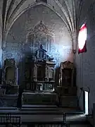 - La original bóveda de la cabecera que cuenta con lobos dibujados sobre los nervios de la misma.