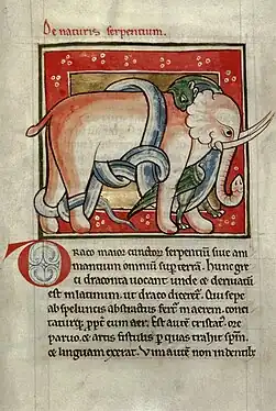El mundo anglonormando entero estaba fascinado por el bestiario, en el que la naturaleza servía como una lección de comportamiento para el hombre y donde lo real se confundía con lo fantástico mientras que estimulaba la imaginación. Los bestiarios de lujo decorados con miniaturas pintadas sobre un fondo de oro estuvieron de moda en Inglaterra en el último cuarto del siglo XII entre una élite cultivada. En ese siglo XII, pocos manuscritos continentales podían competir con la producción inglesa.[48] Varios manuscritos ricamente ilustrados de este período se conservan: el bestiario de Aberdeen, el bestiario Worksop, datado en 1187 (Morgan Library, M.81)[49] o incluso el bestiario de Ashmole, más tardío.[41]