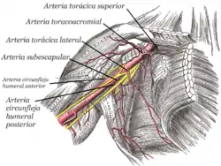 ![]() Arteria axilar con sus ramas, incluyendo la arteria subescapular. | ||