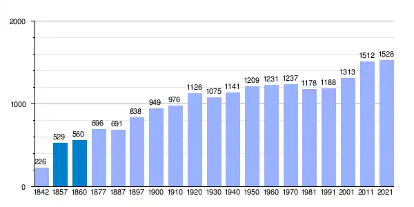 | Gráfica de evolución demográfica de Artesa de Lleida[4] entre 1842 y 2021 |