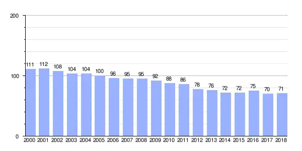 | Gráfica de evolución demográfica de Arzón entre 2000 y 2018 |