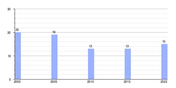 | Gráfica de evolución demográfica de As Lamas entre 2000 y 2022 |