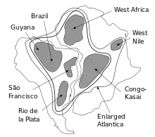 Atlántica es un continente antiguo que surgió hace aproximadamente 2000 millones de años.[1] Alrededor de 200 millones de años más tarde, se convirtió en parte del supercontinente Columbia y 300 millones de años más tarde, se separa de Columbia. Hace 1.100 millones de años (o 400 millones de años después de la desintegración de Columbia), se une a Nena y Ur, pasando a formar parte del supercontinente Rodinia. Después de que Rodinia se dividiera y los fragmentos se volvieran a reunir hace 600 millones de años, pasa a formar parte del supercontinente Pannotia. En el Cámbrico, Pannotia se desintegró, dejando Atlántica en el supercontinente Gondwana. Gondwana luego pasa a formar parte del supercontinente Pangea en el Pérmico, y luego se fragmentó en el Jurásico. En la actualidad, restos de Atlántica se encuentran en África y Sudamérica.