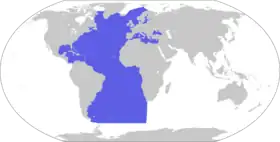 Atlántico Norte (n.º id. 23) Atlántico Sur (n.º id. 32) Mares Báltico, Caribe, de Groenlandia, Mediterráneo, Negro, del Norte, de Noruega, Cantábrico y golfos de México, Venezuela, Scotia y San Lorenzo | |