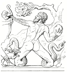 Gigante anguípedo luchando contra los dioses. Dibujo de un relieve de la Gigantomachia.