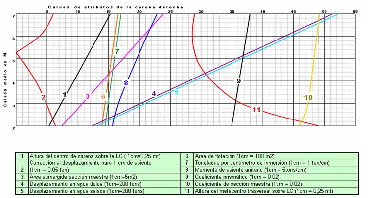 Otras curvas son empleadas en los cálculos de calados finales y de asiento.
