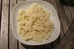 Attiéké (escrito a veces acheke)[1] es un acompañamiento preparado con mandioca que forma parte de la gastronomía de Costa de Marfil en África. La base del platillo es pulpa de mandioca rallada o granulada fermentada.[2] También se prepara attiéké desecado, el cual posee una textura similar al cuscús.[2] Es un platillo tradicional y común en Costa de Marfil, que se originó en la región sur del país,[3] y el método para su preparación es bien conocido en Costa de Marfil y en Benín.[2] En Costa de Marfil, este platillo se sirve como acompañamiento de Kedjenou, un tipo de guiso. El attiéké fresco se echa a perder rápidamente, y por lo general debe ser consumido dentro de las 24 horas posteriores a su preparación.[4] Por ser un producto perecedero de vida muy corta, es difícil implementar la distribución masiva desde zonas rurales a zonas urbanas.[4]
