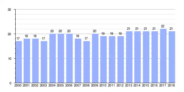 | Gráfica de evolución demográfica de Aturela entre 2000 y 2018 |