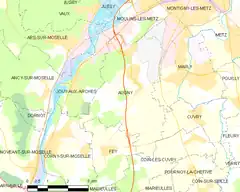 Augny es una población y comuna francesa, en la región de Lorena, departamento de Mosela, en el distrito de Metz-Campagne y cantón de Montigny-lès-Metz.