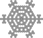 El autómata celular Hexagonal-Ulam-Warburton (Hex-UWCA) es un patrón fractal bidimensional que crece en una cuadrícula regular de celdas que consta de hexágonos. Se aplica la misma regla de crecimiento para el UWCA y el patrón vuelve a ser un hexágono en generaciones , cuando el primer hexágono se considera generación .