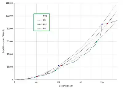 Luego, el número total de celdas ON en la secuencia entera viene dado por[6]