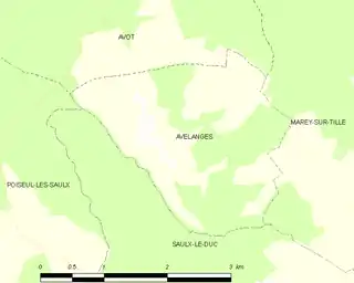 Avelanges es una población y comuna francesa, en la región de Borgoña, departamento de Côte-d'Or, en el distrito de Dijon y cantón de Is-sur-Tille.