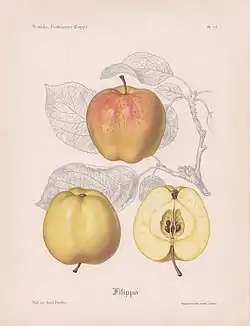 Litografía de cuadro creado por Axel Hjelm, de la variedad de manzana 'Filippa'.