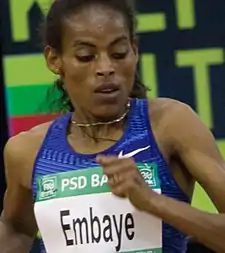 Axumawit Embaye (en amárico: አክሱማይት እምባዬ, 18 de octubre de 1994) es una deportista etíope que compite en atletismo, especialista en las carreras de velocidad.[1]