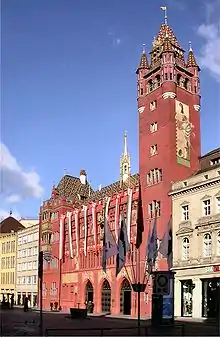 El Ayuntamiento de Basilea (alemán: Rathaus Basel, conocido localmente como Roothuus) es un edificio de quinientos años de antigüedad que domina la Marktplatz de Basilea, Suiza.