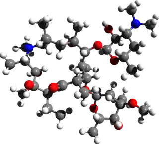 La azitromicina es un antibiótico de amplio espectro del grupo de macrólidos que actúa contra varias bacterias grampositivas y gramnegativas. También es efectiva contra Mycoplasma pneumoniae, Treponema pallidum, Chlamydia y Mycobacterium avium complex.[1]