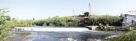 Este azud se sitúa en el margen izquierdo de la cuenca del río Turia, aguas abajo del puente de la carretera V-11 que une el aeropuerto con el Polígono Industrial Fuente del Jarro y a una distancia considerable de la toma precedente de las acequias de Quart y Moncada.[1] Está construido por un muro principal, de 3 metros de ancho y una longitud aproximada de 75 metros, con una suave pendiente a dos aguas y una parte posterior formada por dos escalones, de aproximadamente metro y medio de ancho cada uno.[1] El conjunto del azud está formado por: los escalones de la presa, las bocas o “golas” (gargantas), las compuertas, y por la almenara. Los escalones están hechos con sillares, ya desgastados por el paso del agua pero en un estado óptimo.[1][2] La fecha de datación de la presa y la gola es del siglo XVI o el XVIII. La almenara, inmediata a la garganta, está hecha de sillares. Las compuertas y la caseta son posteriores a la riada de 1957, perviven los arcos y las bóvedas de ladrillo que cubrían la acequia.[1][2]