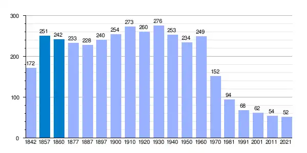 | Gráfica de evolución demográfica de Bárcena de Campos[2] entre 1842 y 2021 |