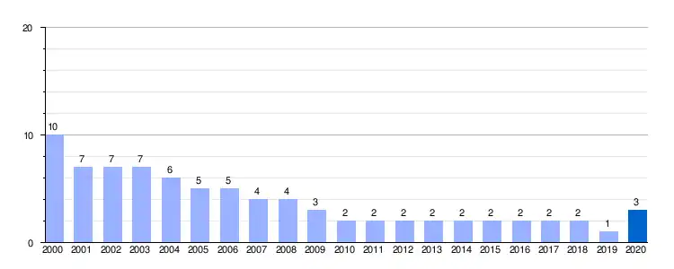 | Gráfica de evolución demográfica de Báscones de Ebro entre 2000 y 2020 |