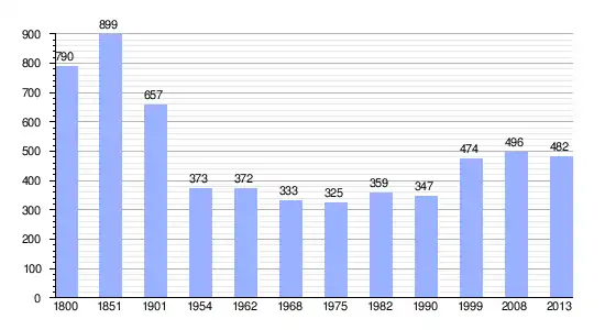 | Gráfica de evolución demográfica de Bédouès-Cocurès entre 1800 y 2013 |