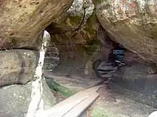 - Una ruta turística de varios cientos de metros de longitud discurre entre diversas formaciones rocosas como mazas, setas o pilares.[1] Algunas de las rocas tienen sus propios nombres, como Stołowy Głaz, Tunel, Kuchnia o Kurza Stopka.[1] En los lugares más estrechos, los turistas tienen que meterse por grietas en la roca de varias decenas de centímetros.[1]