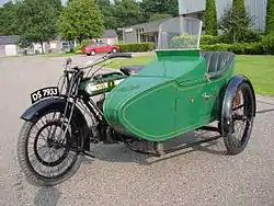 En noviembre de 1919, BSA lanzó su primera motocicleta con un motor bicilíndrico en V a 50 grados, la BSA Model E de 770 cc y válvulas laterale (6–7 hp) para la temporada 1920.[4] La máquina tenía válvulas intercambiables, sistema de vaciado total de aceite con bomba mecánica y una de bomba de emergencia manual. El precio de venta al público fue de 130 libras. Otras características fueron el carburador Amal, la transmisión por cadena, la elección de magneto o Magdyno, el embrague de 7 placas, la caja de cambios de 3 velocidades con arranque rápido y el nuevo tipo de horquilla en voladizo.[5]