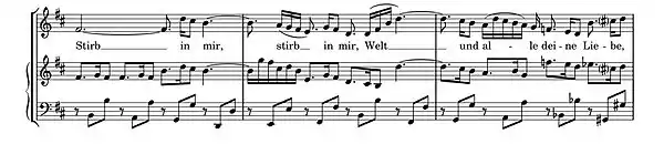 8, el cual Jones (2013) ha descrito como hermoso e inquietante. En forma da capo, el ritornello sostenido de cuerdas está acompañado por el clavicémbalo con una realización explícita del bajo cifrado mediante suaves semicorcheas de acordes rotos. Después del ritornello de apertura, el clavicémbalo, acompañado de acordes de corchea separados en las cuerdas, toca su propia línea melódica dividida en dos largas frases cada vez más ornamentadas, la segunda de las cuales se funde con el acompañamiento de semicorchea del ritornello de cierre.[16][17][14][7]