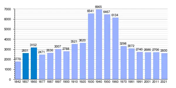 A mediados del siglo XIX la villa tenía contabilizada una población de 1770 habitantes.[2] La localidad aparece descrita en el tercer volumen del Diccionario geográfico-estadístico-histórico de España y sus posesiones de Ultramar de Pascual Madoz de la siguiente manera: