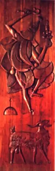 ![]() Escultura de Carybé en madera expuesta en el Museo Afro-Brasileño, en Salvador de Bahía, representando a Babalú Ayé u Omolu. | |||