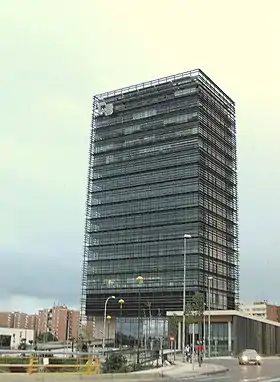 Consta de dos partes; una de ellas es una base de dos plantas (la baja y la primera) en la que se encuentra un auditorio con capacidad para 500 personas, un centro de negocios (dotado con varias salas flexibles, preparadas para diversos usos), un restaurante para empleados, dos cafeterías, una guardería para empleados, un gimnasio, un aparcamiento, una piscina cubierta y una sala de exposiciones.