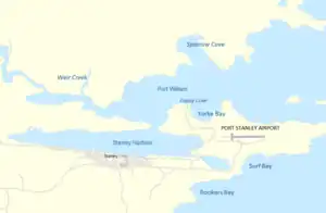 - Falkland Islands Navigational Charts & Minefield Map; pg. 15-16, 2011 Harbor Info Brochure. http://www.falklandislands.com/shopimages/imagelibrary/pdfs/harbour-info-basic.pdf Archivado el 12 de mayo de 2013 en Wayback Machine.