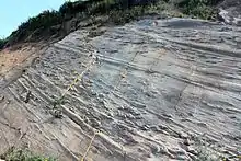 Aunque es en punta Carnero donde mejor se aprecian estas secuencias, la unidad de Algeciras se extiende por toda la bahía. Aparece también en los acantilados de punta de San García o Torrealmirante, con alturas de hasta 20 metros y amplias plataformas de abrasión, en las sinuosas colinas sobre las que se asientan las ciudades de Algeciras, Los Barrios y San Roque hasta las faldas de sierra Carbonera. Al norte de La Línea de la Concepción formando parte de sierra Carbonera afloran flyschs de arenisca denominados flyschs de La Línea que han sido interpretados como parte de la unidad del Aljibe, ocupando su base o como elemento de transición entre esta unidad y la de Algeciras.[16]