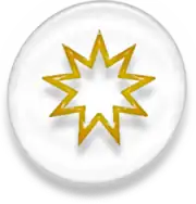 La estrella de nueve puntas es el símbolo oficial de la fe bahaí. Se la conoce como haykal ("templo" en árabe) y fue establecida por El Báb. Tanto El Báb como Bahá'u'lláh escribieron obras en forma de estrella.[21] No obstante, la mayoría de los símbolos de la religión derivan de la palabra árabe bahá (بهاء "esplendor" o "gloria"), identificada con el valor numérico de 9, según la cábala del árabe para la que ب=2,ه=5, ا=1 ,ء=1, título dado por el Báb a Bahá'u'lláh para la ocasión de la conferencia de Badasht y por ello la estrella de nueve puntas ha alcanzado una mayor difusión y popularidad como símbolo de esta religión.