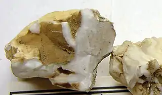Es un mineral raro, se ha encontrado como vetas irregulares en rocas volcánicas alteradas, como las del cañón Baker o el valle de la muerte, en California (EE. UU.).