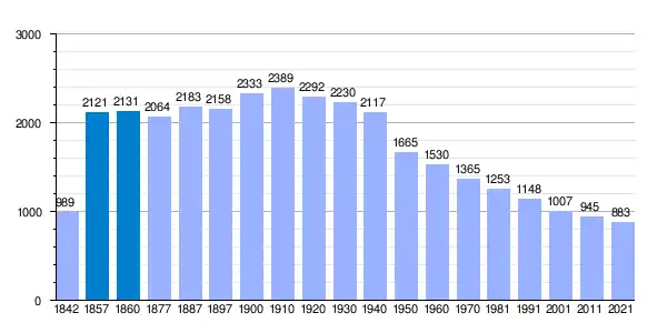 | Gráfica de evolución demográfica de Ballobar[18] entre 1842 y 2021 |
