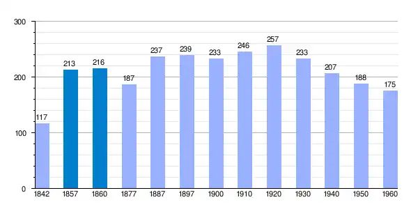 | Gráfica de evolución demográfica de Banaries[9] entre 1842 y 1960 |