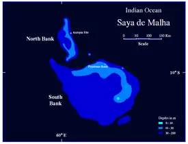 El Banco Saya de Malha consiste en una serie de bancos estrechos, con profundidades de 17 a 29 m en el borde. Están dispuestos en forma semicircular, en torno a un espacio, la antigua laguna, a unos 73 m de profundidad, la cual se inclina en el sureste. Algunas áreas del Banco son poco profundas, menos de 10 m por debajo de la superficie. Los sitios de menos profundidad, conocidos como Roca Poydenot, a una profundidad de 8 m, y un anónimo sitio ubicado a 145 km más al noroeste, con una profundidad de 7 m. Los Bancos están cubiertos con algas marinas intercaladas con pequeños arrecifes de coral. Debido a su localización remota, el Banco se encuentra entre las ecorregiones marinas someras menos estudiadas del planeta. Los bancos son un criadero de las ballenas jorobadas y las ballenas azules.