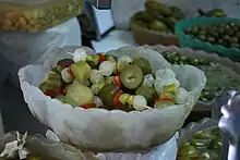 Las banderillas son una tapa servida en algunos bares españoles que consiste en unos encurtidos, pepinillos, aceitunas, cebollitas y una guindilla, etc, insertados en un palillo largo de unos 10 cm en brocheta. La característica de la banderilla es su mezcla en el sabor ácido del encurtido y el ligeramente picante de la guindilla.[1]