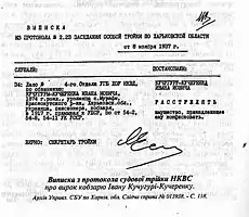En los últimos años, han aparecido significativas evidencias de que a la conferencia etnográfica para banduristas, kobzarís y lírnyks (tocadores de zanfona), organizada en Járkov de diciembre de 1933, asistieron 300 músicos ciegos, que fueron posteriormente ejecutados.