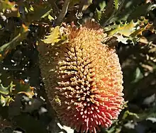 Banksia: nombre genérico que fue otorgado en honor del botánico inglés Sir Joseph Banks, quién colectó el primer espécimen de Banksia en 1770, durante la primera expedición de James Cook.