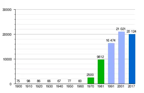 Población según el Gobierno de Navarra.[16] Población de derecho (1900-1991) o población residente (2001) según los censos de población del INE.[17] Población según el padrón municipal de 2017 del INE. |