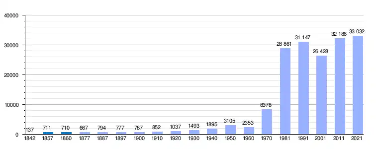 | Gráfica de evolución demográfica de Barberà del Vallès[12] entre 1842 y 2021 |