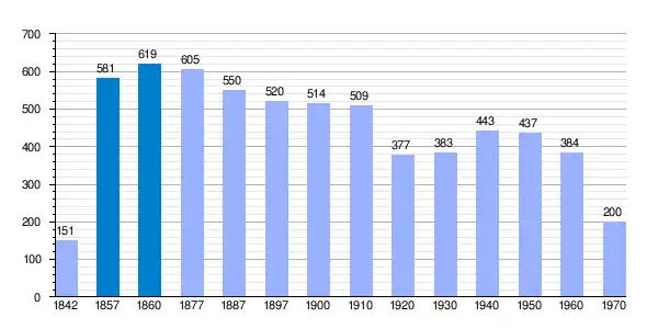 | Gráfica de evolución demográfica de Barcina de los Montes[8] entre 1842 y 1970 |
