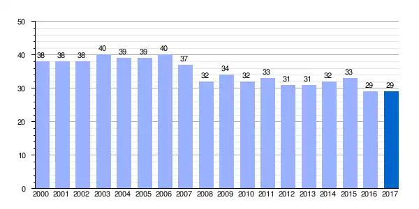 | Gráfica de evolución demográfica de Baroja[1] entre 2000 y 2017 |