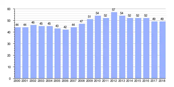 | Gráfica de evolución demográfica de Barouta entre 2000 y 2018 |