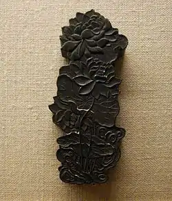La barra de tinta o torta de tinta es un tipo de tinta china sólida utilizada tradicionalmente en varias formas de arte chinas y de Asia oriental, como la caligrafía y la pintura con pincel. Las barras de tinta están hechas principalmente de hollín y cola animal, a veces con incienso o aromas medicinales añadidos.[1] Para hacer tinta, la barra de tinta se muele contra una piedra de entintar con una pequeña cantidad de agua para producir un líquido oscuro que luego se aplica con un pincel de tinta. Al ajustar la fuerza y la duración del proceso de molienda de la tinta, los artistas y calígrafos pueden ajustar la concentración de la tinta producida para adaptarla a sus gustos.
