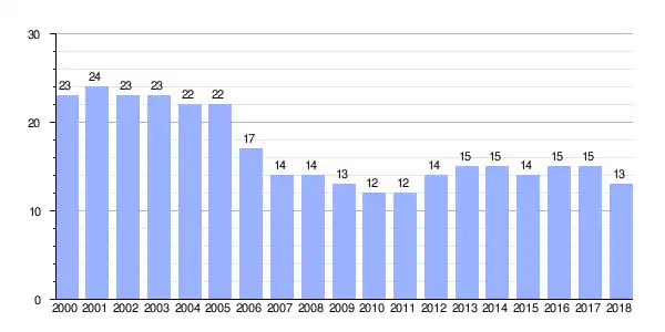 | Gráfica de evolución demográfica de Barral entre 2000 y 2018 |