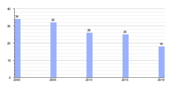 | Gráfica de evolución demográfica de San Cosme de Barreiros (aldea) entre 2000 y 2019 |